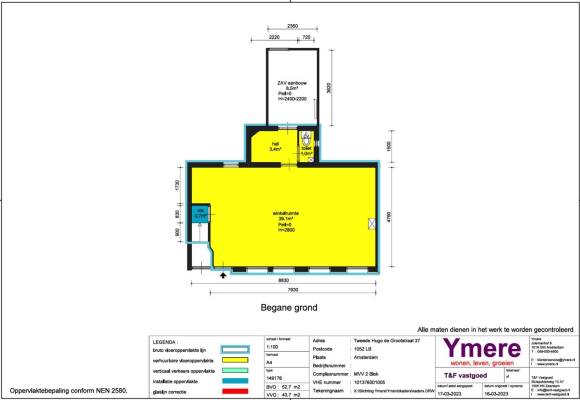 Dit bedrijfspand op het adres Tweede Hugo de Grootstraat 37-H te Amsterdam is geschikt als winkelruimte. Het betreft hier bestaande bouw met energielabel C. Deze winkelruimte heeft een oppervlakte van 44 m² en bestaat uit 1 bouwlaag.