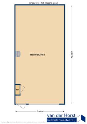 Dit bedrijfspand op het adres Lingewei 61 te Tiel is breed inzetbaar als bedrijfsruimte. Het betreft hier bestaande bouw uit 2006. Een energielabel is niet beschikbaar. Het pand beschikt over één of meerdere voorzieningen waaronder overheaddeuren. Deze bedrijfsruimte heeft een oppervlakte van 50 m².
