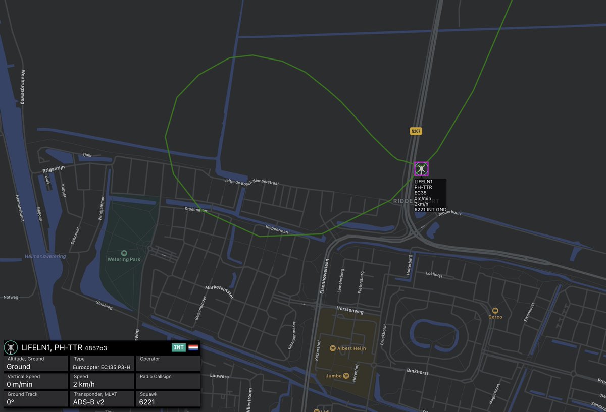 #Lifeliner1 geland naast de N207 Herenweg #Alphen ivm een steekpartij in de Keizershof..