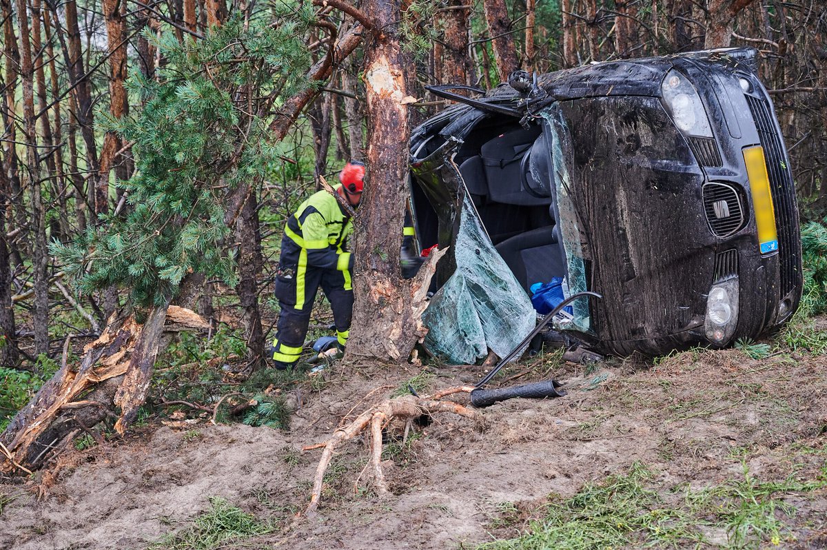 Door de klap belandde de auto op de zijkant en raakte zwaar beschadigd. Politie, brandweer en ambulance kwamen ter plaatse.