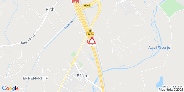 Weg afgesloten: A16 afrit Breda / N263 (15) > knp Galder. Ongeval(len)...