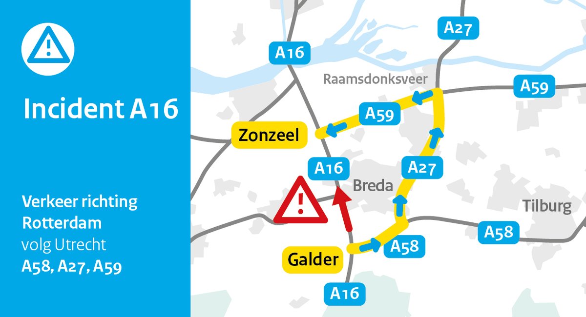 | Door een ongeval bij Breda-Noord is de #A16 richting Rotterdam dicht.