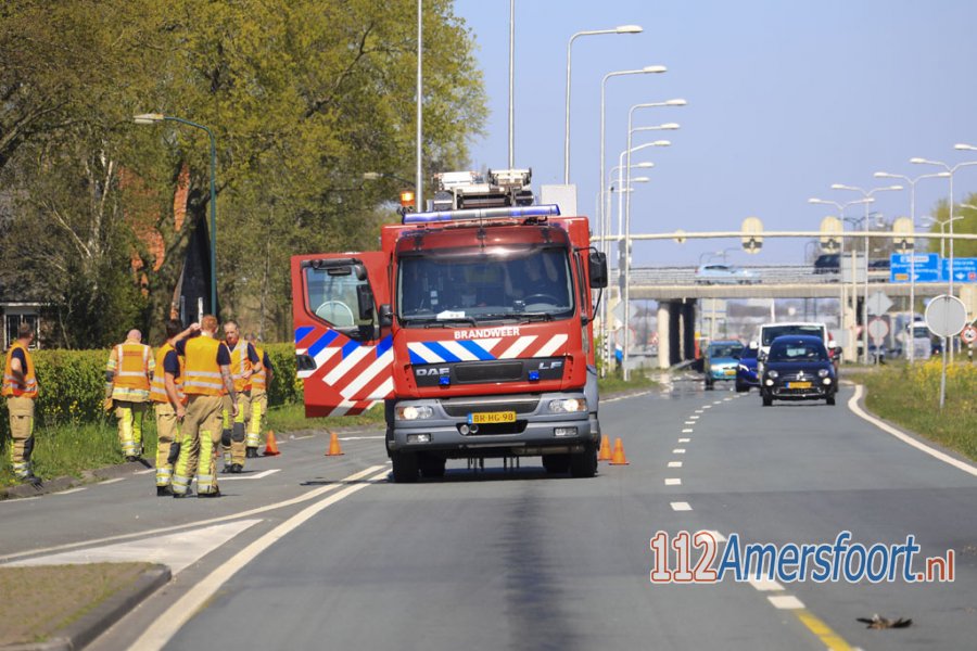 HOOGLAND - Woensdagmiddag 15 april rond 13.10 uur heeft een kapotte vrachtwagen een spoor van honderden meters olie achtergelaten op de Bunschoterstraat - N199 in Hoogland.
