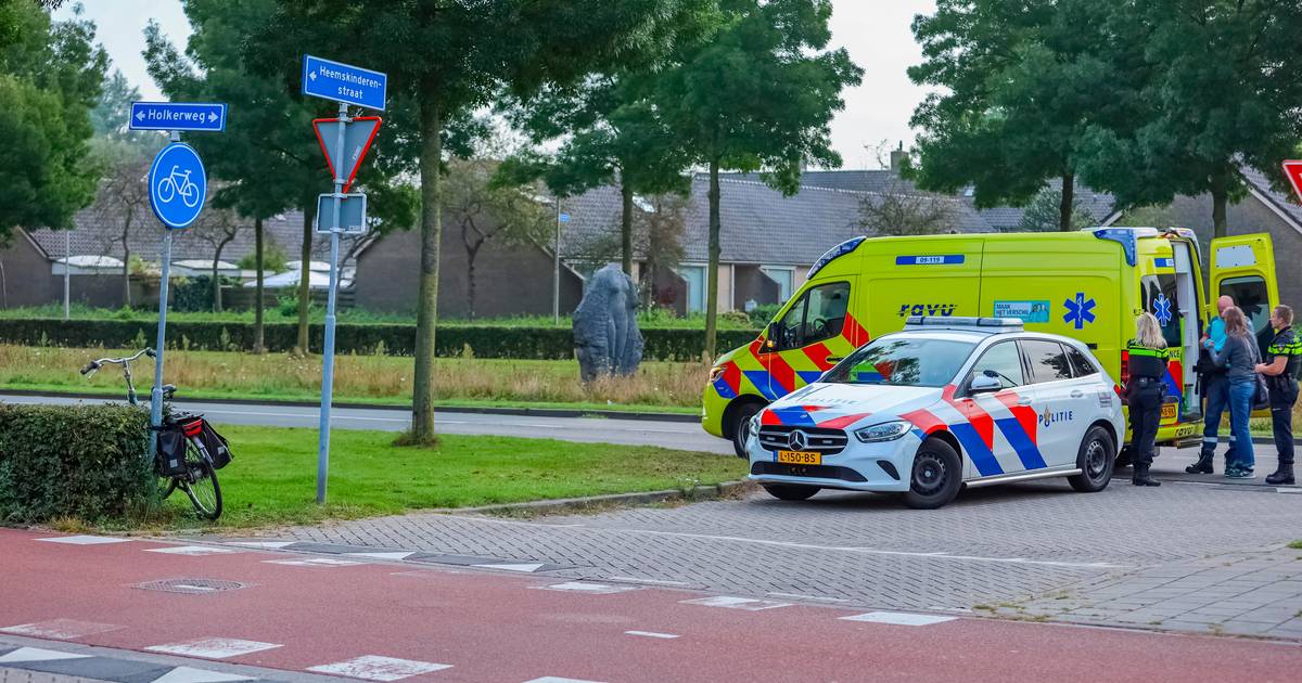 Een fietser is dinsdagochtend rond 08.50 uur door een auto aangereden op de Holkerweg, ter hoogte van de Heemskinderenstraat.