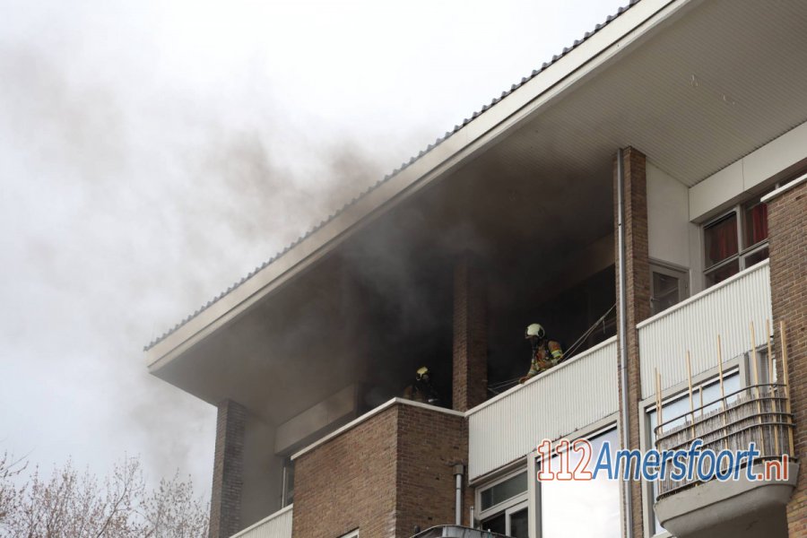 AMERSFOORT - Dinsdagmiddag 6 april rond 15.35 uur is brand ontstaan in een woning op de bovenste verdieping van een flatgebouw aan de Vreeland in Amersfoort.