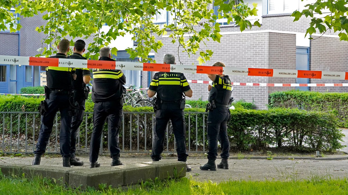 De politie doet onderzoek naar een melding over schoten op de Opijnenhof in Zuidoost, dinsdagavond 6 juli 2021 rond 19 uur.