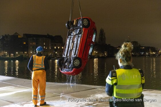 binnen van een auto te water nabij de VOC-kade. Meerdere hulpdiensten werden opgeroepen en de twee inzittenden, een man en vrouw van beide 34 jaar oud, konden door het duikteam van de brandweer uit het voertuig worden gehaald.