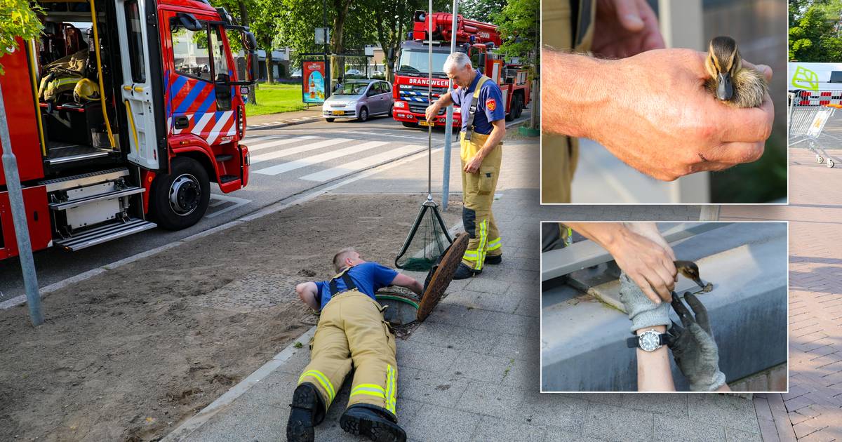 De brandweer in Apeldoorn rukte vanmorgen wederom uit naar het winkelcentrum aan het Mercatorplein om twee jonge eendjes te redden.