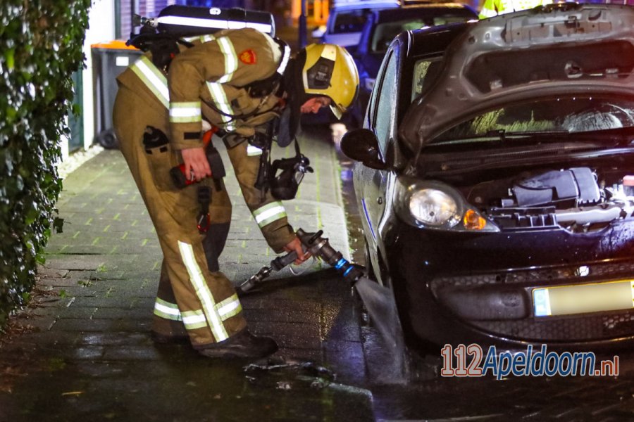 APELDOORN - Op de hoek Bartelsweg met de Schotweg in Apeldoorn is in de nacht van maandag op dinsdag 26 januari brand gesticht in twee auto's.