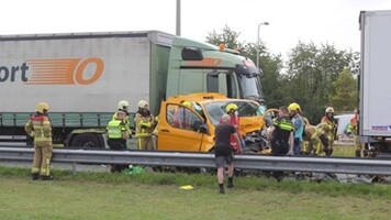 KLARENBEEK - Bij een ongeval tussen een vrachtwagen en een bestelbus, op de A50 tussen Apeldoorn en Arnhem, is vrijdagmiddag een persoon ernstig gewond geraakt.