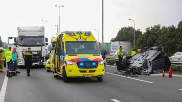 APELDOORN - Vanwege een ernstig ongeluk is de A1 bij Apeldoorn in de richting van Deventer voorlopig helemaal dicht. Een auto ligt daar op de kop na een aanrijding met een vrachtwagen.