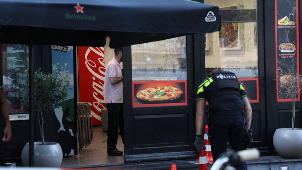 De meldingen van de schietpartij bij de kebabzaak kwamen even na 06.00 uur binnen. In een van de ramen is een gat te zien. Volgens een correspondent werd er geschoten op het moment dat twee medewerkers de zaak aan het afsluiten waren.