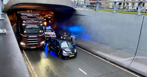 ARNHEM - Een automobilist heeft woensdag even na het middaguur zijn auto kapotgereden in de Willemstunnel in Arnhem.