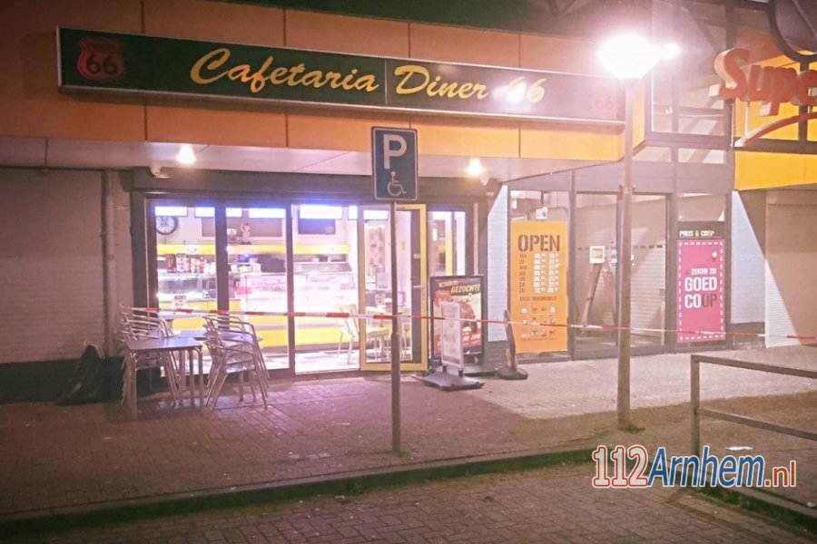 Op 4 december werd deze cafetaria overvallen en werd een medewerker hard in zijn gezicht geschopt door een van de overvallers