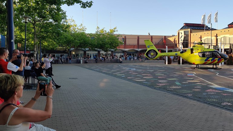Het Mobiel Medisch Team van de traumahelikopter was opgeroepen voor het verlenen van medische assistentie in het centrum van de stad. De vele mensen die nog in het centrum aanwezig waren maakten ruimte, maar bleven veelal wel kijken naar de vliegcapaciteiten van de piloot.
