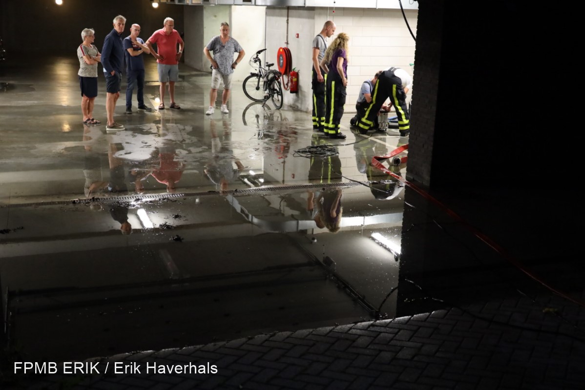 Waar het onder andere in de Bommelerwaard vrijwel droog bleef viel het water in de buurt van Loon op Zand met bakken uit de lucht. Straten stonden blank en kelders en een fietstunnel liepen vol met water. Foto’s FPMB / Erik Haverhals