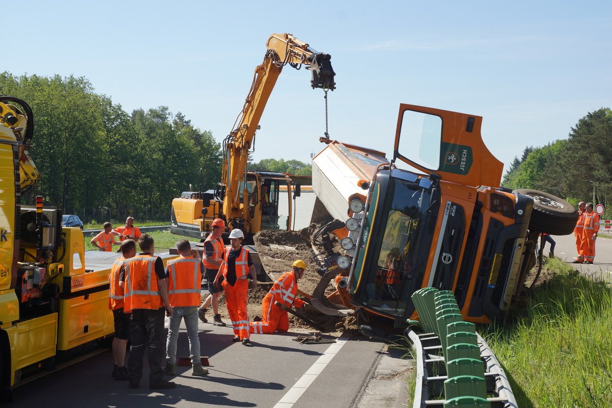 LOON OP ZAND- Tijdens werkzaamheden aan het snelfietspad aan de Heideweg in Loon op Zand is woensdagmorgen een vrachtwagen omgekanteld en op de busbaan beland van de N261 bij Loon op Zand. De chauffeur is met de schrik vrijgekomen.