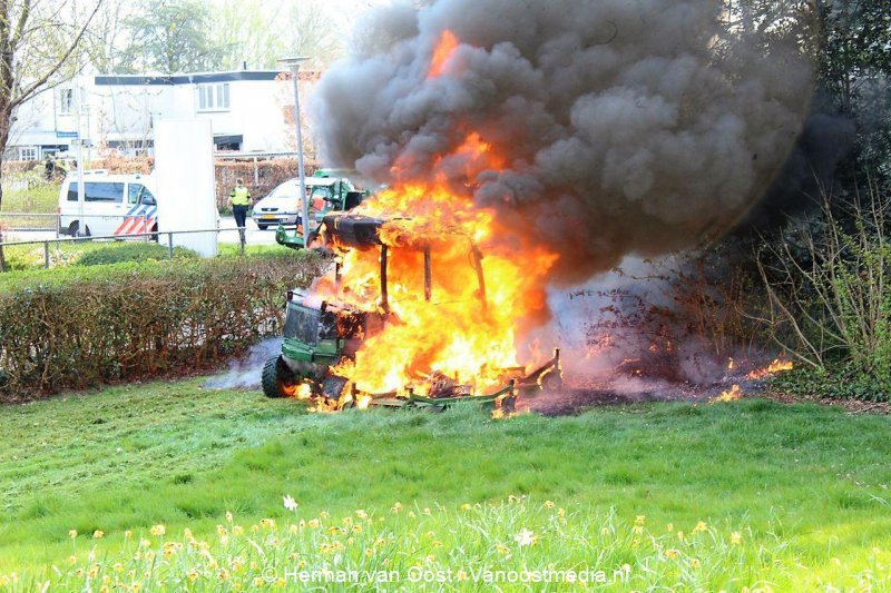De oorzaak van de brand is niet bekend. Brandweer Assen heeft vuur geblust de machine is total-loss.