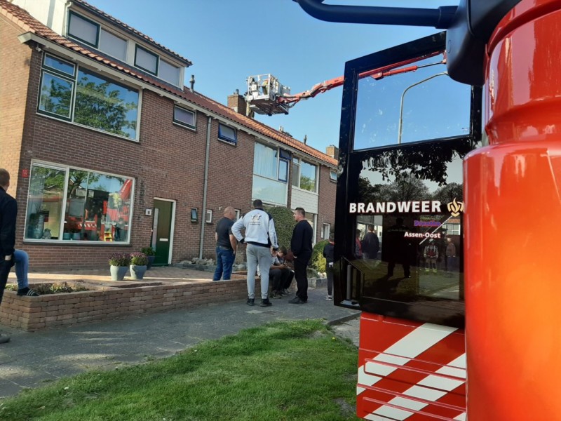 Rookontwikkeling bij schoorsteenbrand in Assen -. #Drenthe.