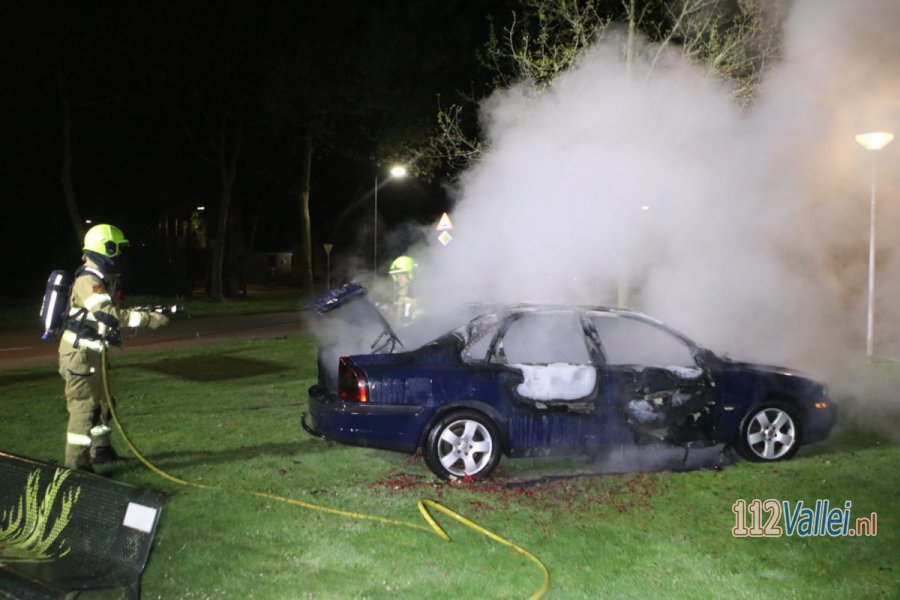 ZWARTEBROEK - Op het kruispunt Damweg met de Platanenlaan in Zwartebroek is in de Koningsnacht een personenauto volledig uitgebrand.