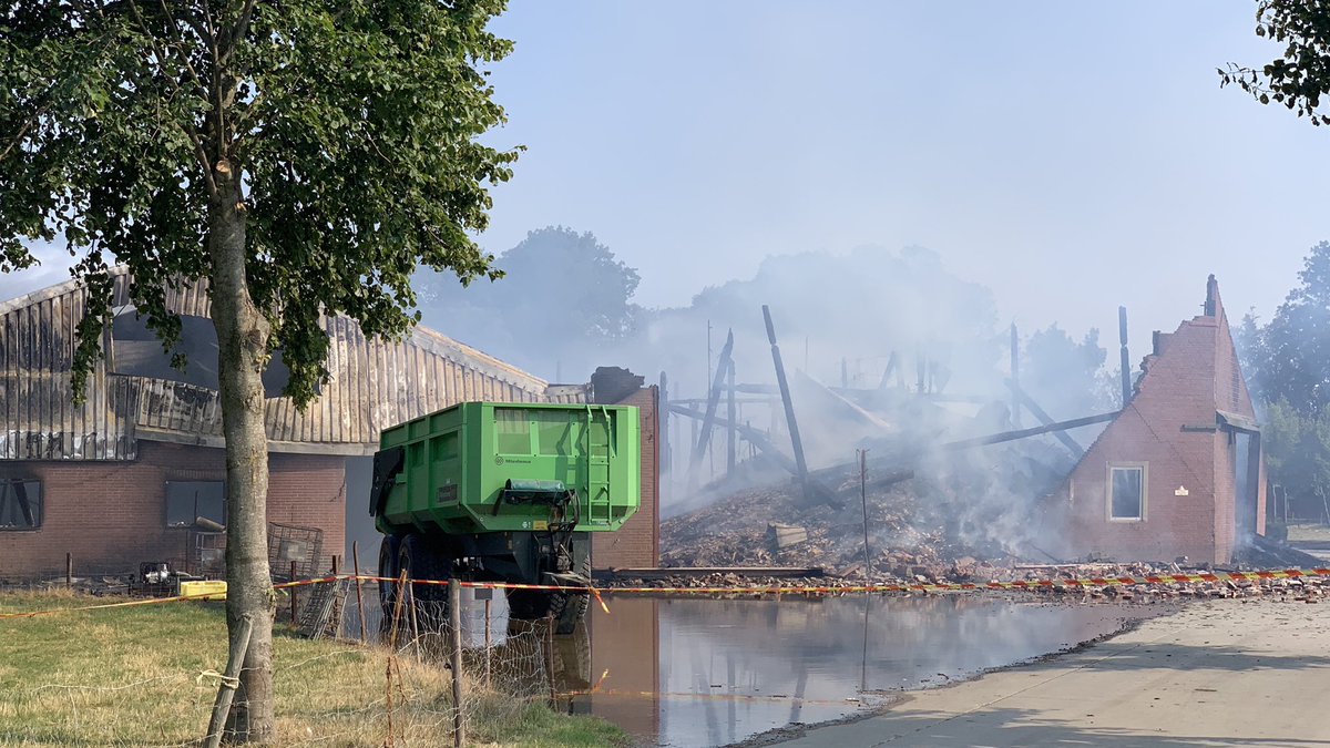 Twee schuren zijn verloren gegaan, maar de brandweer heeft de aansluitende woning kunnen behouden. #rtvnoord.