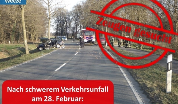 Well | De politie in het Duitse Goch zoekt getuigen van een zwaar verkeersongeval dat zondag 28 februari over de grens bij Well gebeurde. Op de weg L486 in Weeze raakte een 49-jarige vrouw levensgevaarlijk gewond toen haar auto van de straat af raakte en tegen een boom aan kwam.