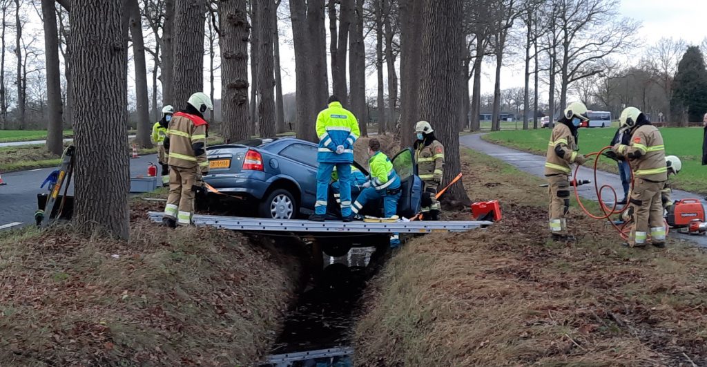 Ter plaatse bleek een personenauto van de weg geraakt. De auto is tegen een boom gebotst waarna hij in een naastgelegen sloot tot stilstand kwam. De bestuurder is hierbij gewond geraakt en door de brandweer uit het voertuig bevrijd.