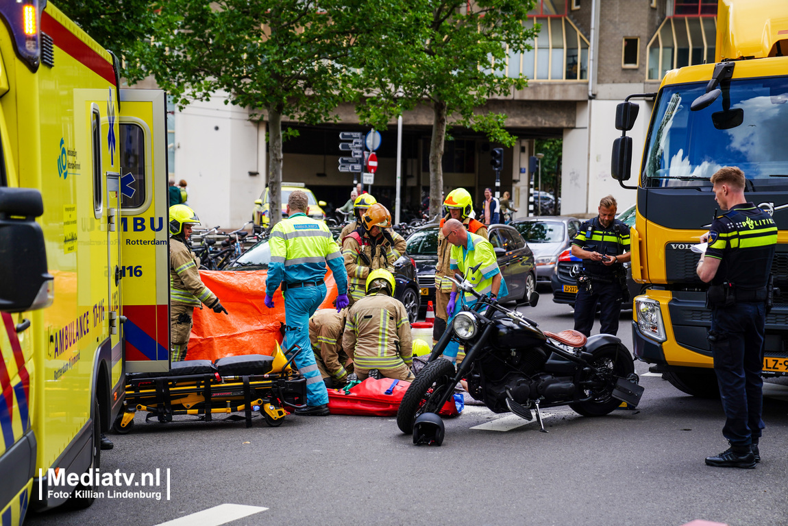 Een motorrijder is zwaargewond geraakt bij een ongeval met een vrachtwagen op de Blaak ter hoogte van het station.