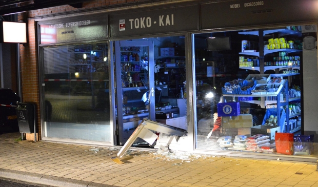 Hierbij is flinke schade aangebracht aan de gevel van de winkel. De daders verloren daarnaast de kentekenplaat van het voertuig maar waarschijnlijk gaat het om een gestolen voertuig.
