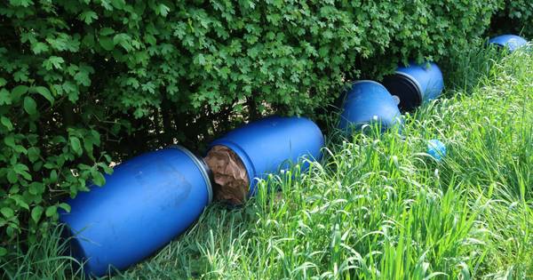 BREDA - Een voorbijganger heeft vrijdagmiddag vijf blauwe vaten in een weiland aan de Koekelarestraat in Breda gevonden. Er zit vermoedelijk drugsafval in.
