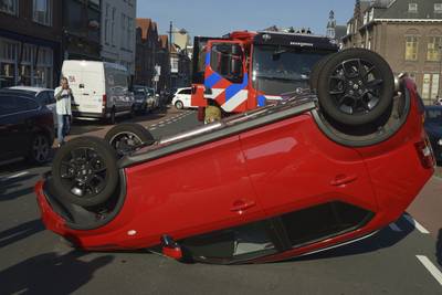 Het slachtoffer sloeg over de kop nadat ze schrok van een manoeuvre die de automobilist voor haar uithaalde. De brandweer kwam ter plaatse voor een beknelling, maar de vrouw was zelf al uit haar auto gekomen.