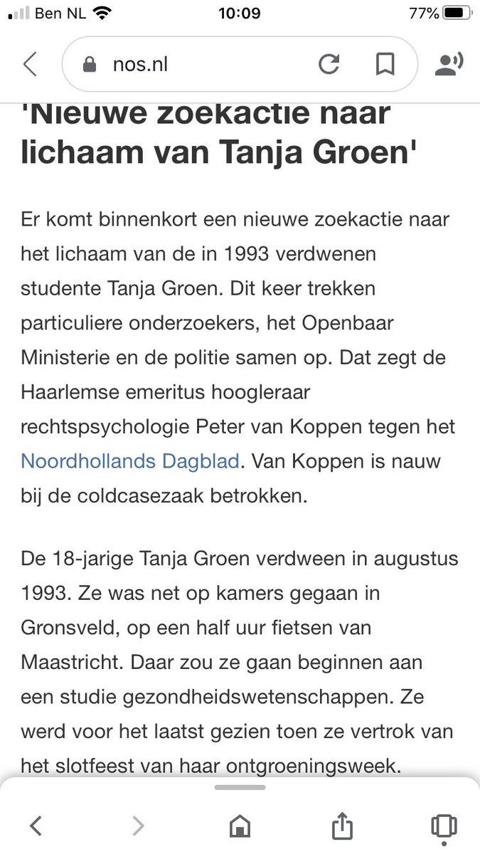 Goede zaak, particuliere onderzoekers, Openbaar Ministerie en politie trekken gezamenlijk op, in vermissingszaak Tanja Groen. Dat is ons in Teteringen niet gelukt. ..