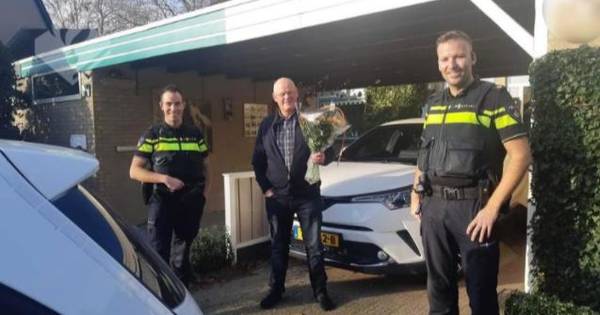 De politie van Bunschoten heeft Renger Bos dinsdagmiddag een bloemetje gebracht. De Bunschoter had vrijdagmiddag een 86-jarige man uit een sloot langs de Fokjesweg gered.