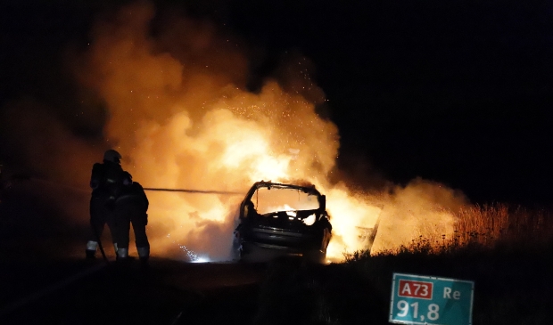LINDEN | Een rijdende auto op de A73 ging dinsdagavond spontaan in vlammen op.