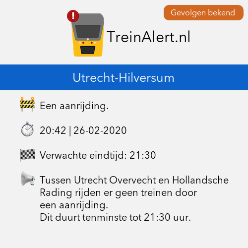 Tussen Utrecht Overvecht en Hollandsche Rading rijden er geen treinen door een aanrijding.