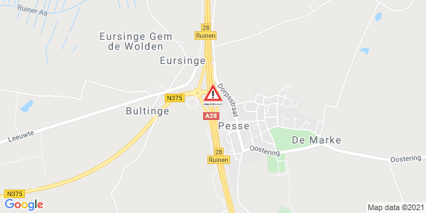 Weg afgesloten: A28 afrit Ruinen / N375 (28).