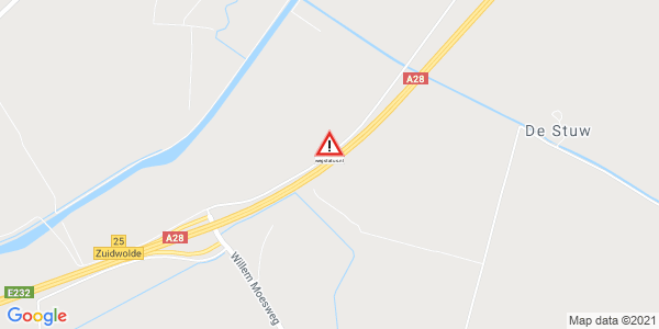 wegstatus: Weg afgesloten: A28 afrit Zuidwolde (25). Ongeval(len)...