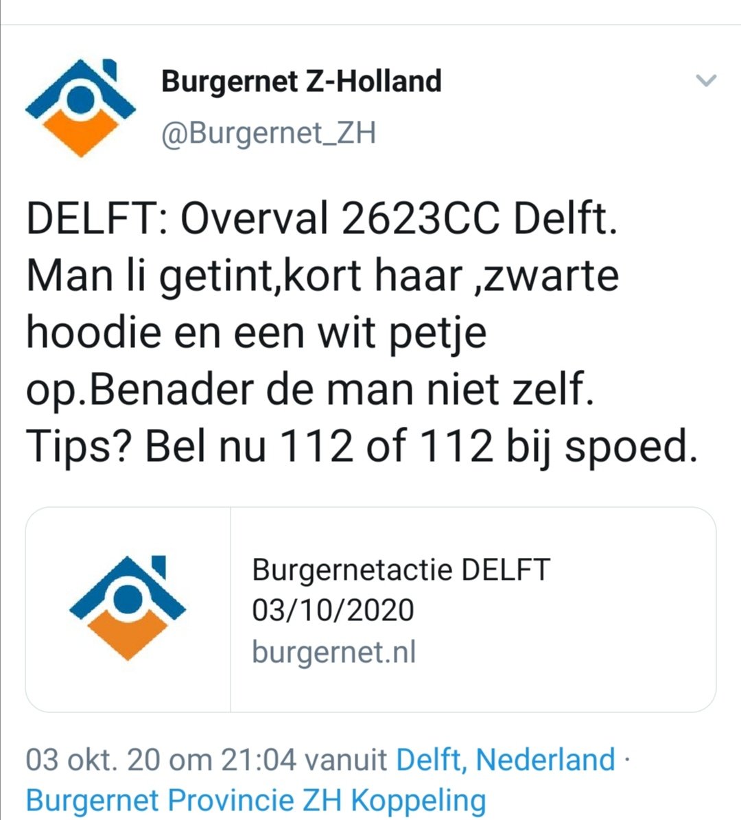 Dit bericht is gevonden op Twitter en hoeft niet afkomstig te zijn van een 112 hulpdienst.