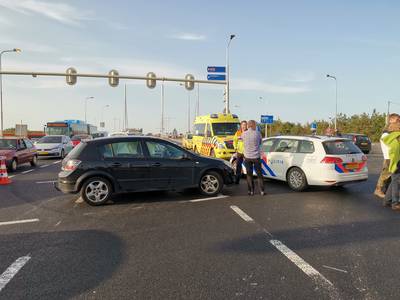 W. Dreeslaan, bij de nieuwe afrit van de A12 in Bennekom. Twee auto's knalden daar donderdagavond op elkaar. De inzittenden zijn per ambulance naar het ziekenhuis gebracht.