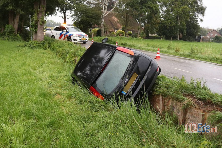 Een automobilist is met zijn auto van de weg geraakt en in een sloot beland. Bij het eenzijdige ongeval is niemand gewond geraakt. De politie heeft een wegdeel afgesloten.