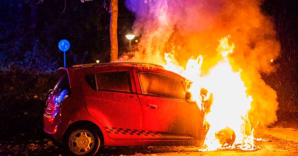 De brandweer, die rond 00.30 uur in actie moest komen, trof in het voertuig een fles met lachgas aan.