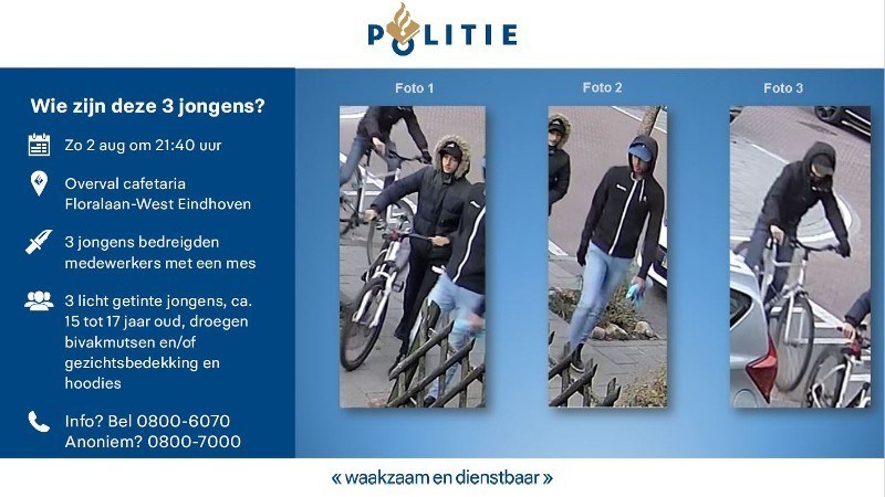 Eindhoven – Op zondagavond 2 augustus overvallen 3 jonge daders een cafetaria aan de Floralaan-West in Eindhoven. Ze bedreigden medewerkers met een mes en gingen er met de gsm van een van hen vandoor. Niemand raakte gelukkig gewond. Maar een overval is natuurlijk een heftige ervaring die een flinke impact heeft op betrokkenen. De medewerkers van het cafetaria blijven dan ook geschrokken achter.
