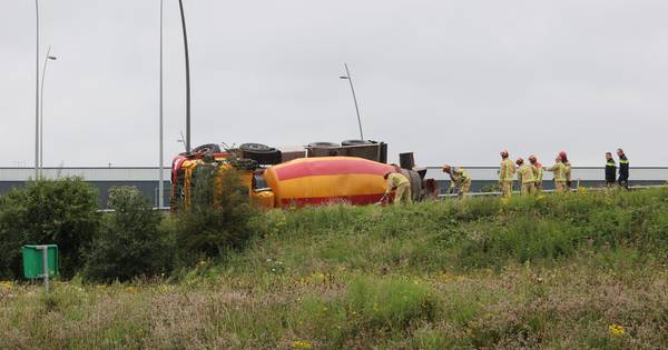 Betonwagen gekanteld op N2 bij Eindhoven, weg tot 15.00 uur dicht.