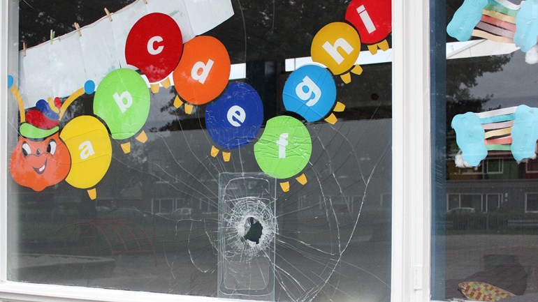 Vanmiddag werd het kapotte raamwerk ontdekt. De politie heeft nog geen idee wie het glas kapot gegooid heeft en roept mensen op zich te melden als ze meer over het incident kunnen vertellen.