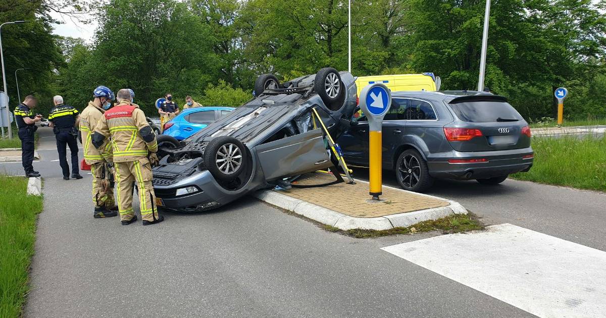 Het mag een wonder heten dat er niemand gewond is geraakt bij het ongeval op de Oostweg in Enschede. Een auto sloeg daar zaterdagmiddag over de kop en meerdere inzittenden werden door de brandweer uit het voertuig gehaald.