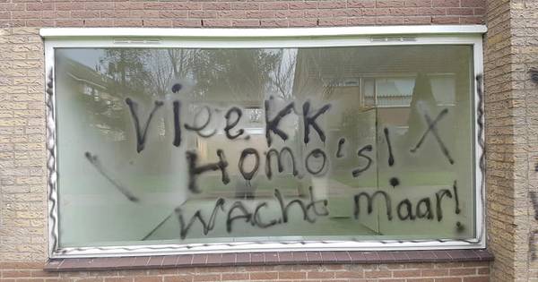 ETTEN-LEUR - Een bizar gezicht aan de Markenland in Etten-Leur. Een van de huizen werd daar beklad met agressieve teksten. Zo stond op het raam van de woning ‘vieze homo's, wacht maar!'.