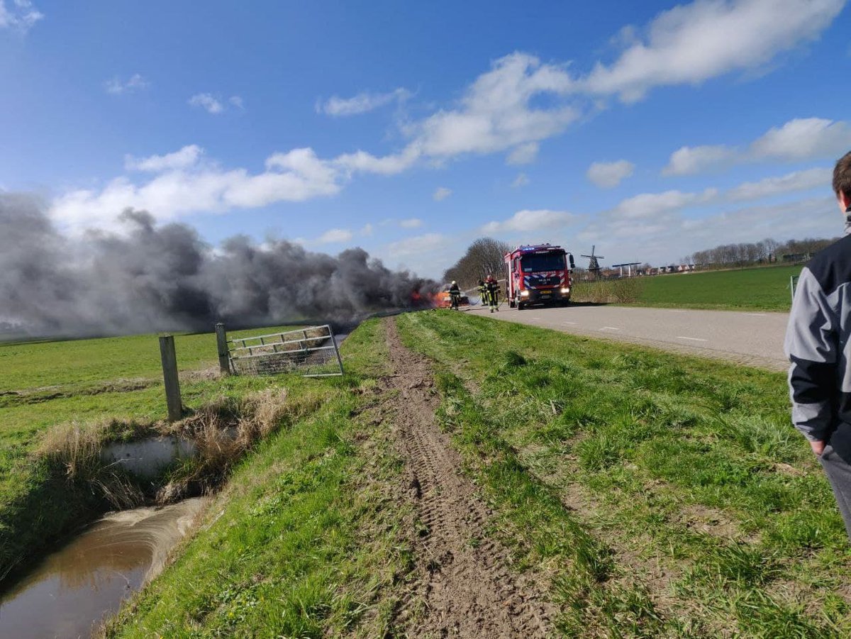 Auto in lichterlaaie tussen Burdaard en Sybrandahûs ..