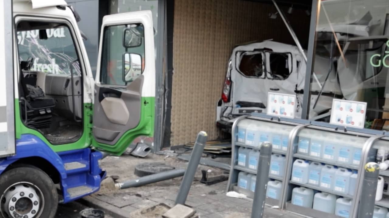 Een vrachtwagenchauffeur heeft maandag langs de A1 bij Muiden een opmerkelijk ongeval veroorzaakt. Het voertuig ramde een busje dat na de botsing de kiosk van het tankstation inrolde.