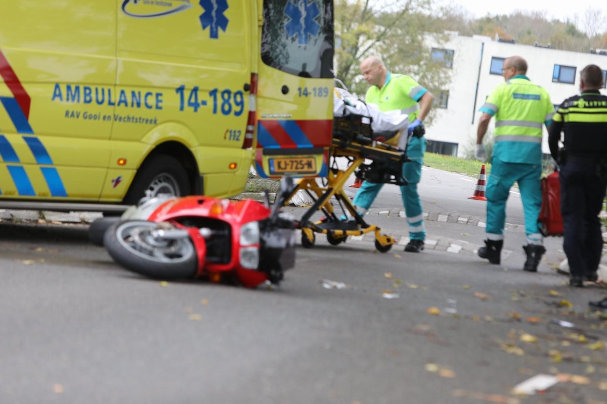 Een motorrijder is door een fietskoerier bewusteloos aangetroffen aan de IJsselmeerweg in Naarden. De bestuurder verloor de macht over het stuur bij een wegversmalling met verkeersdrempels.