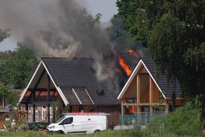 Een vrijstaand huis in het buitengebied van Gassel staat in brand. De brandweer is met veel materieel aanwezig, er is onder meer een hoogwerker aanwezig. De vlammen slaan uit het dak.